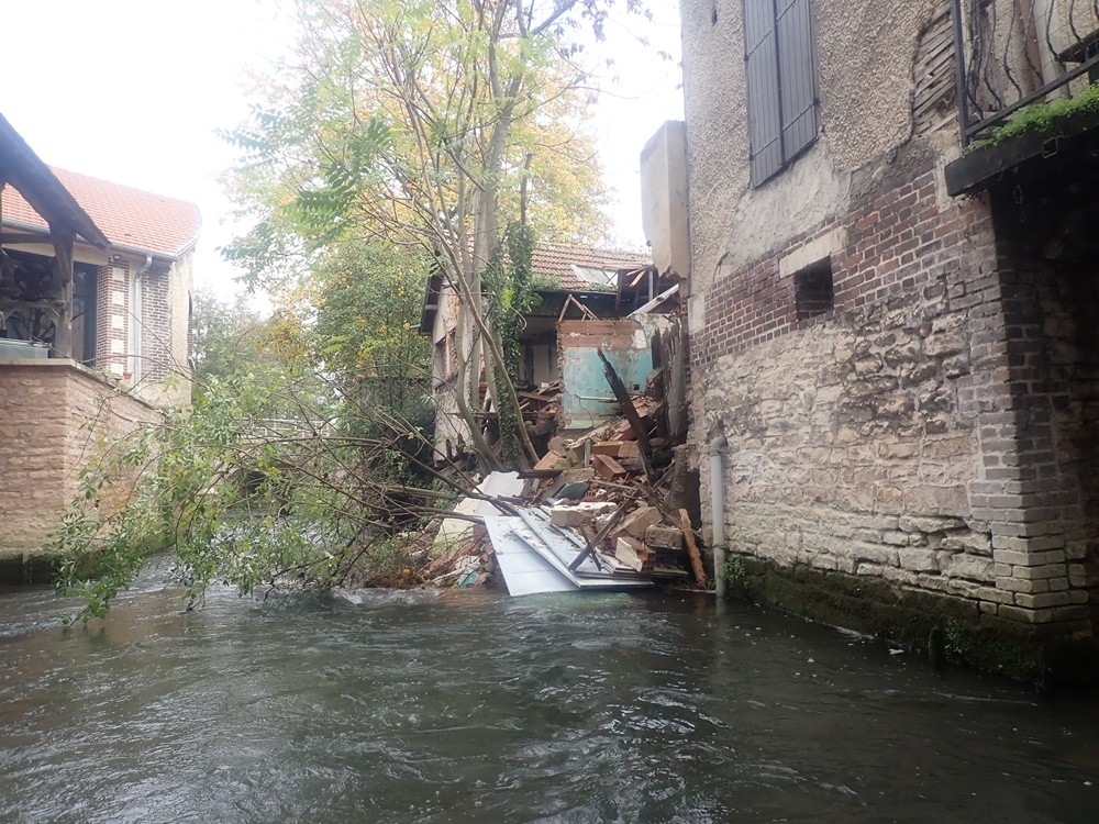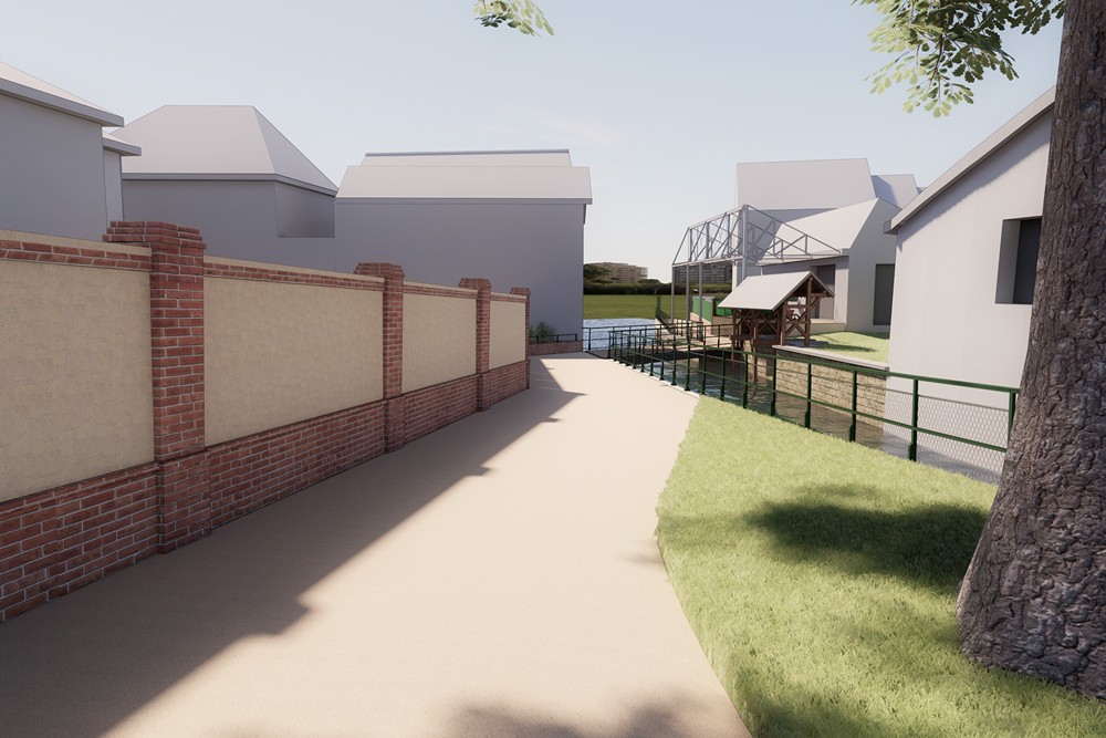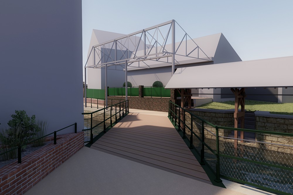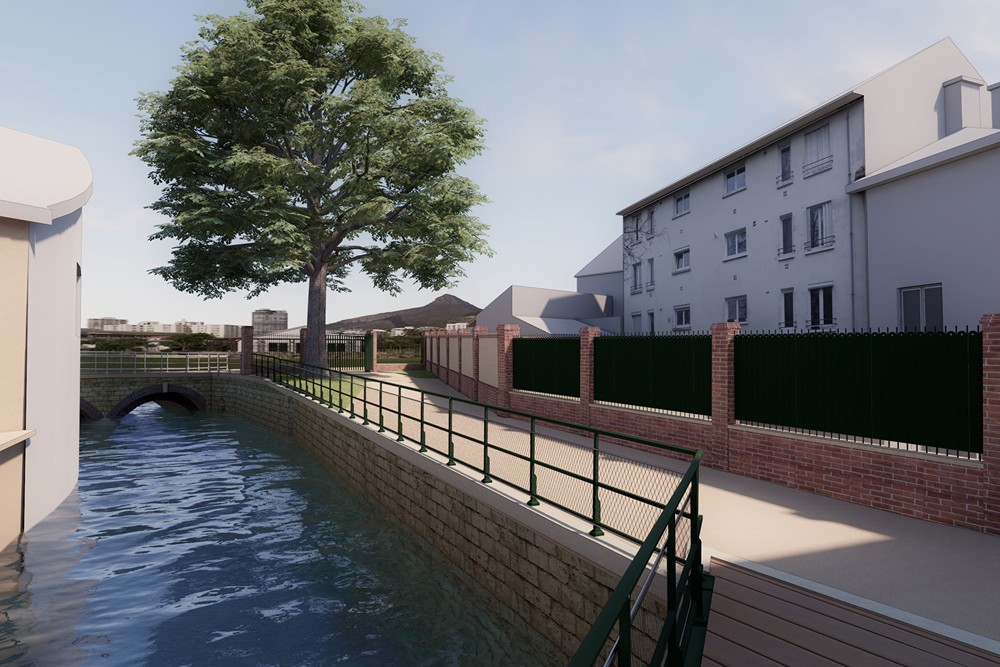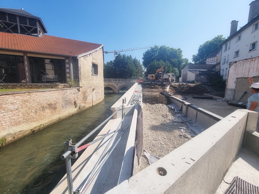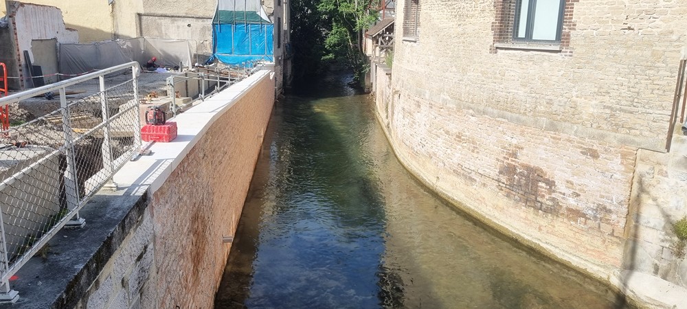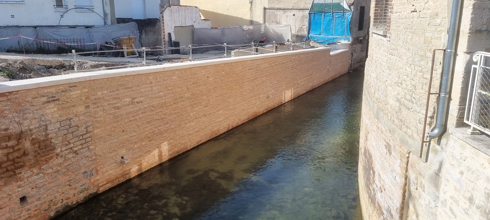 Travaux de réhabiliter et mettre en valeur les berges du canal de Nervaux en supprimant les anciens Sheds partiellement effondrés afin d’aménager une liaison douce pour les piétons avec création d’une passerelle entre le pont Mitantier et le pont Charlemagne sur les berges du canal.